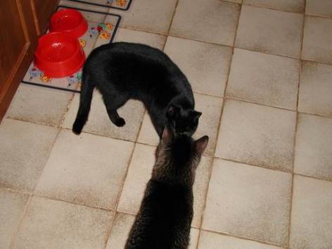 Sondern: „Mikesch“ auf dem Sessel, Patty (Boden), Hexe (Bett), Baby (Heizung)