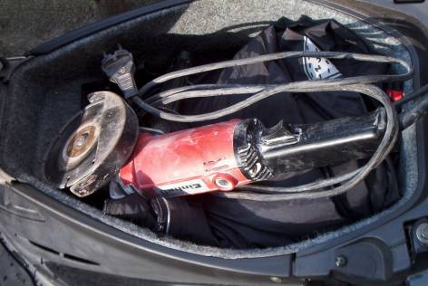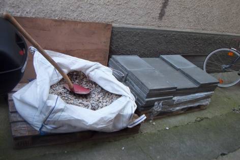 Damit habe ich den Kies und die Betonplatten heruntergeschafft