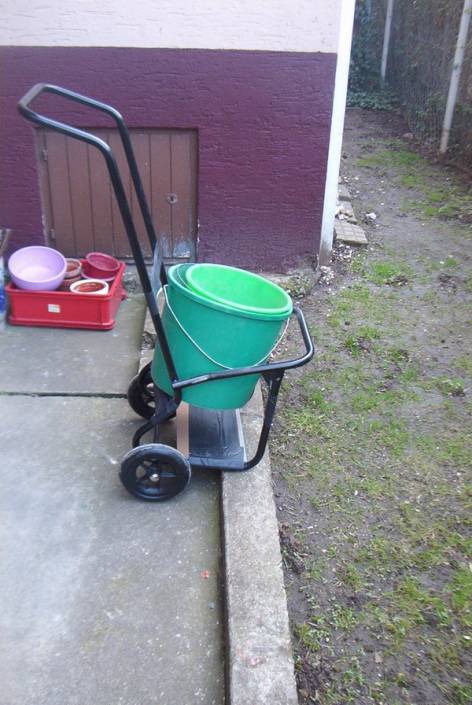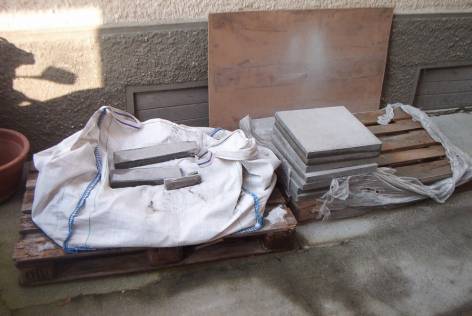 Die Platten waren schwerer als die zwei Eimer voll Kies ! )